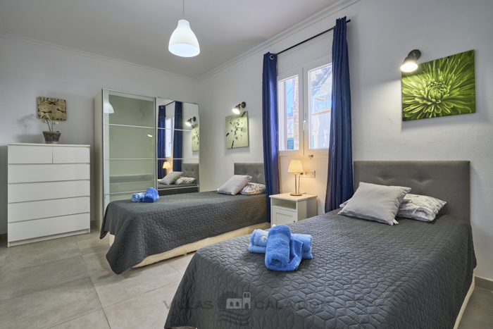 Großes Haus auf zwei Etagen verteilt. Im Erdgeschoss befindet sich die offene Küche mit Essbereich und angrenzendem Wohnzimmer. Neben dem Wohnzimmer gibt es ein Schlafzimmer mit Doppelbett und ein ensuite Badezimmer mit Dusche. Ein Flur neben der Küche führt zu zwei weiteren Schlafzimmern. Eines davon mit zwei Einzelbetten und einem angrenzenden Badezimmer mit Dusche. Das andere Schlafzimmer verfügt über ein Doppelbett und ein ensuite Badezimmer mit Badewanne. Dieses Schlafzimmer hat Zugang zum Poolbereich.