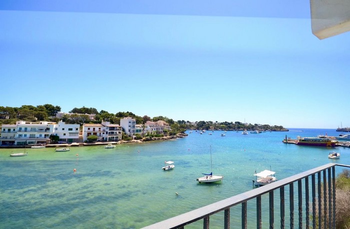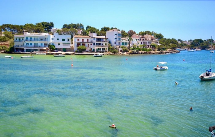 La casa vacacional Es Balcó para 8 personas disfruta de una magnífica ubicación en primera línea, con vistas al encantador puerto natural de Portopetro, Mallorca.